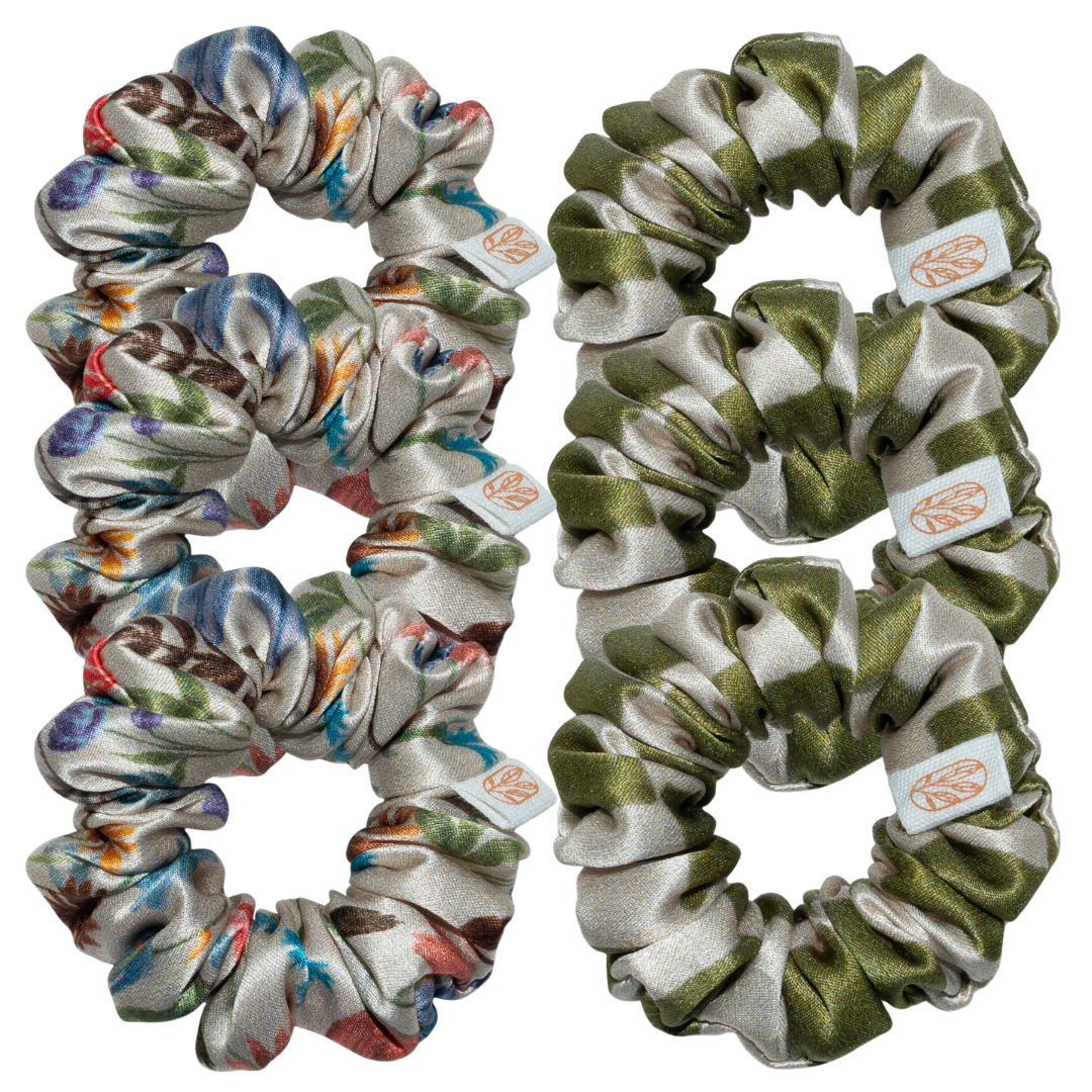 Slightly, yes—and that’s totally normal! Our scrunchies are made with durable elastic that’s meant to flex and hld. Avoid overstretching (remember, we designed them with all that stretch AND hold, so no need to strangle your hair ) and store loosely for longer life. - How do I wash them?
