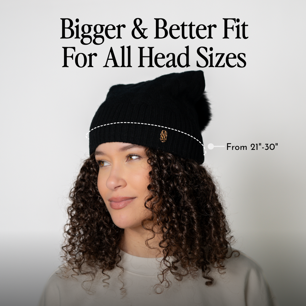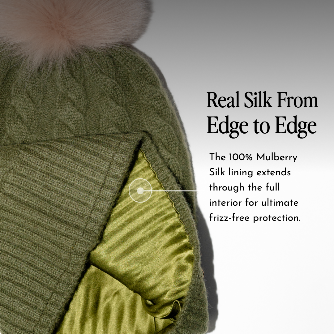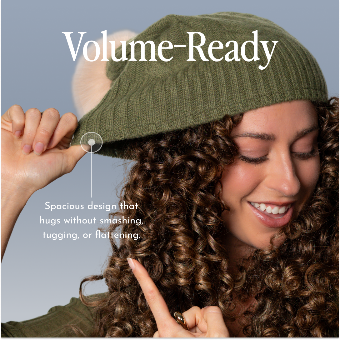 We took the cozy warmth of a cashmere-wool blend and lined it in 100% pure silk — so your curls, coils, and waves stay frizz-free, smooth, and shiny while you stay warm. No static, no frizz, no compromises.