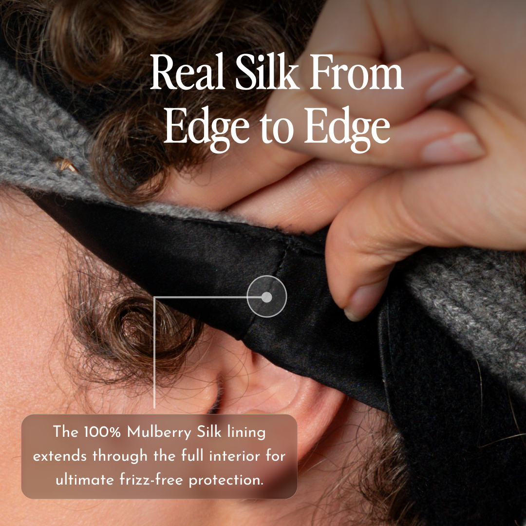 It’s your winter secret weapon! A cozy, cashmere-wool blend exterior lined in 100% pure silk to keep your edges and curls smooth, frizz-free, and protected. The criss-cross front gives that effortless, “put-together without trying” look while keeping your ears toasty without the earmuff headaches.