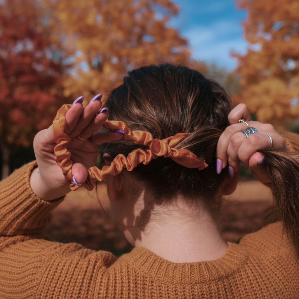 💡 Steam from your shower can help smooth wrinkles! - Bonus Tip: Silk loves a little steam, so hanging your scrunchie in the bathroom while you shower can help maintain its smoothness!